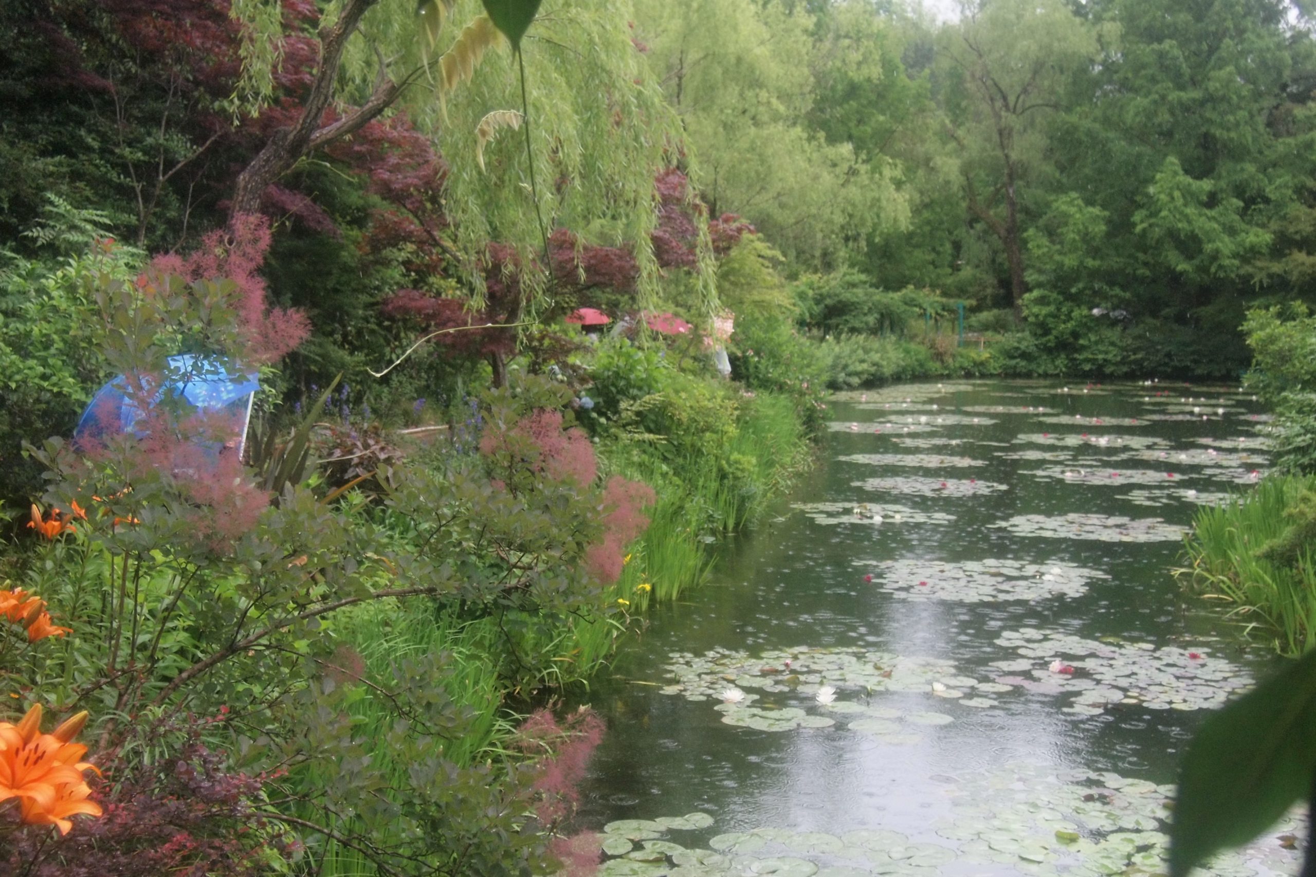 睡蓮の浮かぶ池がメインのお庭なので雨もまた風情があり、花の鮮やかさと歩く人々の明るい傘の色の組み合わせが綺麗でまさにモネの絵のようでした